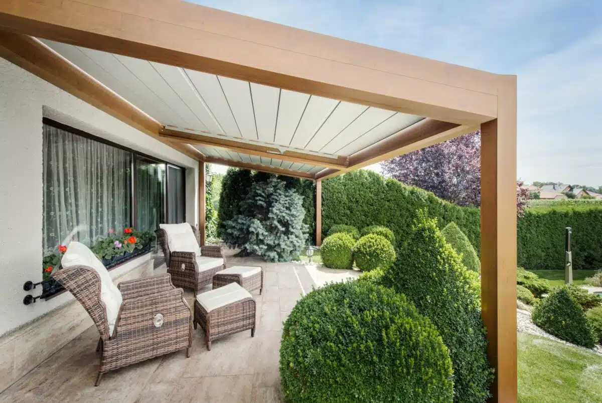 Atypická pergola zkosená je k sedlové střeše někdy tou nejlepší volbou!