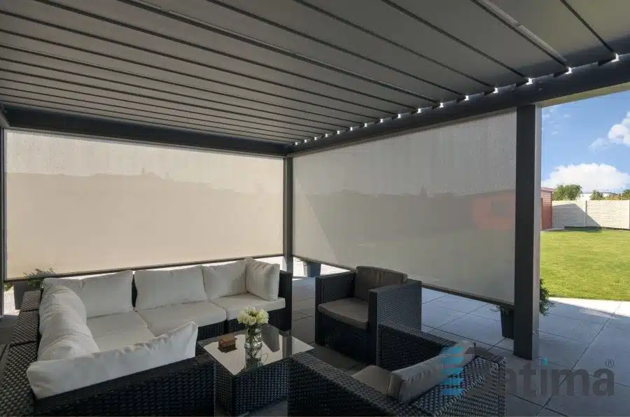 Další realizace krásné pergoly! Požadavky byly jasné- zapuštěná (zafrézovaná) LED světla a 2 screenové rolety se zafrézovanými vodícími lištami.